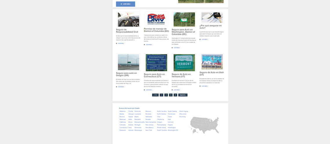 Sitio web desarrollado en WordPress que mostraba información sobre los estados de Estados Unidos para poder generar leads para agencias aseguradoras (ya no se renovó).