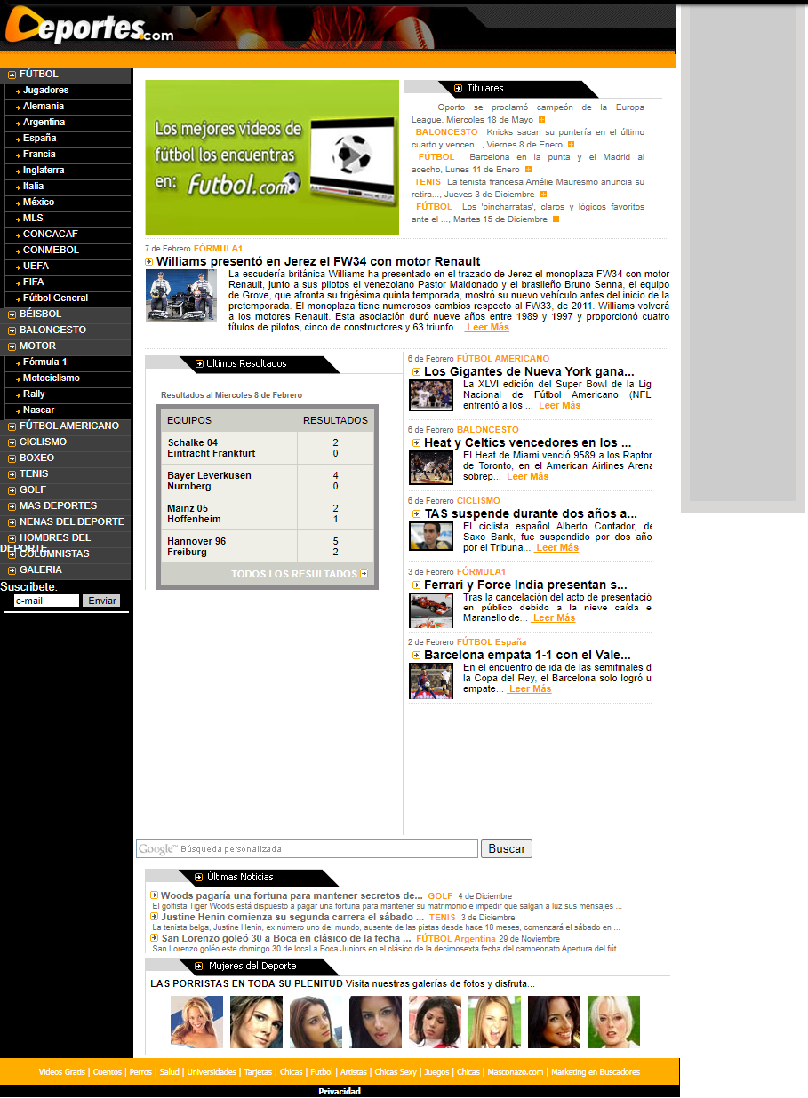 Desarrollo de contenido y algunas funcionalidades en HTML para el sitio web deportes.com el cual mostraba información sobre eventos deportivos varios (dado de baja)